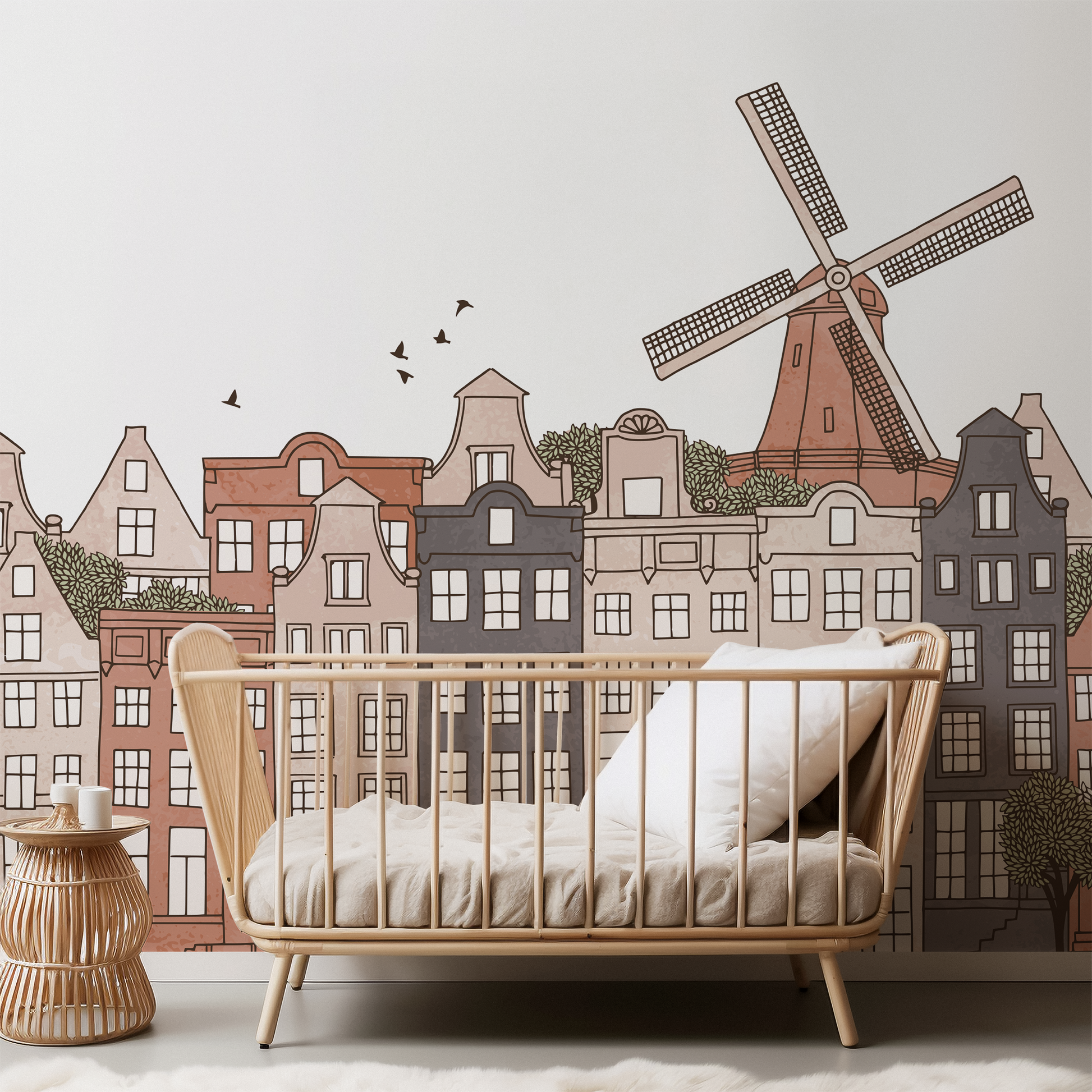 Bring a little Dutch charm to your room with our sweet Amsterdam Mural. This stunning mural features the iconic canals and historic windmills of one of our favorite, picturesque cities. Did you know that with over 165 canals, you can travel over 60 miles along them without ever crossing city limits or cruising the same canal twice?