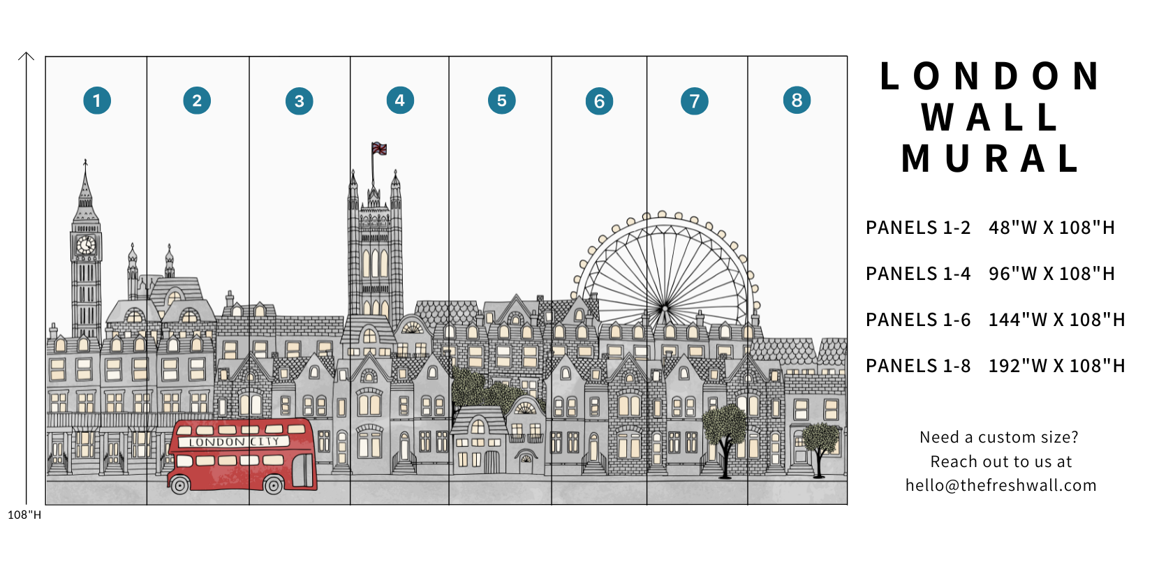 If you have any questions about sizing or are needing a custom mural size, please don’t hesitate to reach out to us at hello@thefreshwall.com! We love creating something that will work for your space.